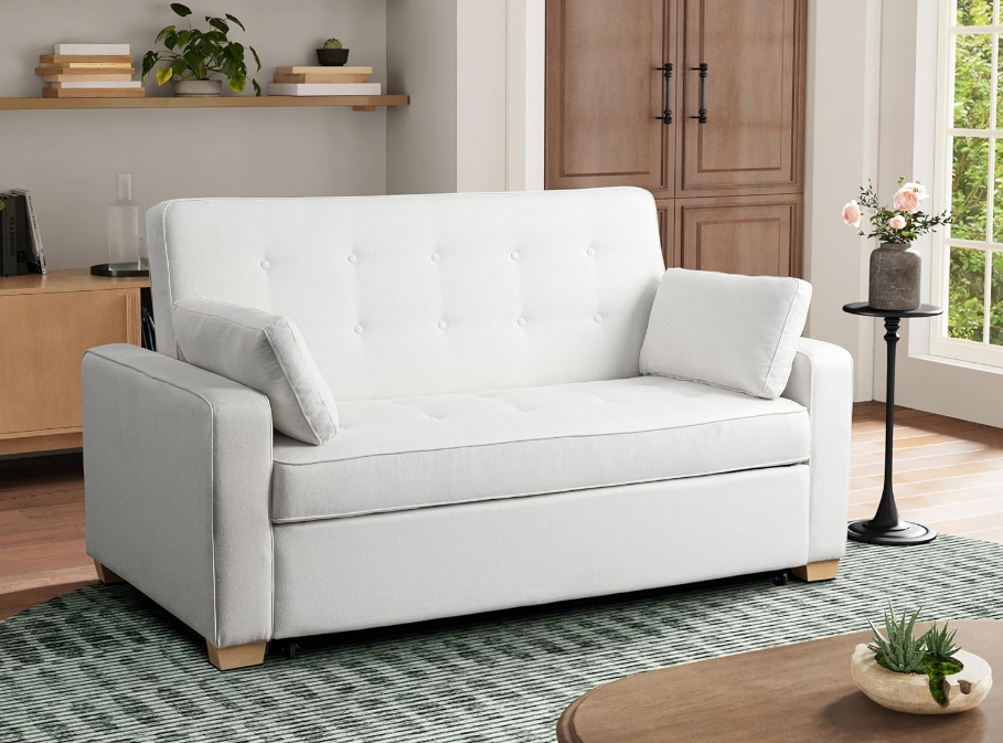 The Ucloveria Sectional Sofa Couch is a versatile sleeper sofa designed for both comfort and functionality. With its pull-out bed and reversible storage chaise, it provides a practical solution for small living spaces, guest rooms, or apartments. The built-in charging station and side pocket add extra convenience, making it easy to keep devices powered and essentials within reach. The linen fabric upholstery gives it a modern and elegant look, while the removable backrest adds flexibility in seating arrangements. However, while the sofa is designed for multi-functionality, the sleeping surface may feel firmer than a traditional bed.